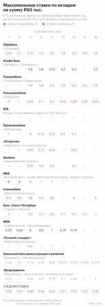 В ближайшее время можно ожидать временной стабилизации ставок по рублевым вкладам, считает директор департамента операций на финансовых рынках банка «Русский стандарт» Максим Тимошенко. «На фоне последних американских санкций и эскалации ситуации в Сирии, спровоцировавших сильное ослабление рубля, высока вероятность, что на апрельском заседании ЦБ оставит ключевую ставку неизменной. При этом сценарии ставки по рублевым депозитам, вероятно, стабилизируются на текущих уровнях», — говорит эксперт.