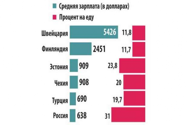 Понятно? Грубо говоря, швейцарец тратит на еду чуть больше одной десятой части заработка, а наш гражданин — почти треть.