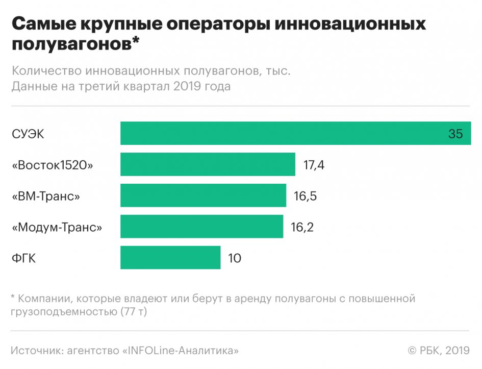 По словам Бурмистрова, после завершения этих сделок «Модум-Транс» станет крупнейшим оператором парка полувагонов с увеличенной грузоподъемностью с парком более 41,5 тыс. единиц. Это больше, чем у нынешнего лидера рынка — угольной компании СУЭК Андрея Мельниченко, у которой сейчас в управлении более 35 тыс. полувагонов с увеличенной грузоподъемностью (см. инфографику). За счет повышенной грузоподъемности, специальной тарифной схемы по порожнему пробегу и меньших расходов на ремонт перевозка в таких вагонах обходится грузоотправителям дешевле.