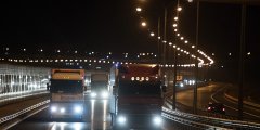 На Крымском мосту открыли движение для грузовиков. Фоторепортаж